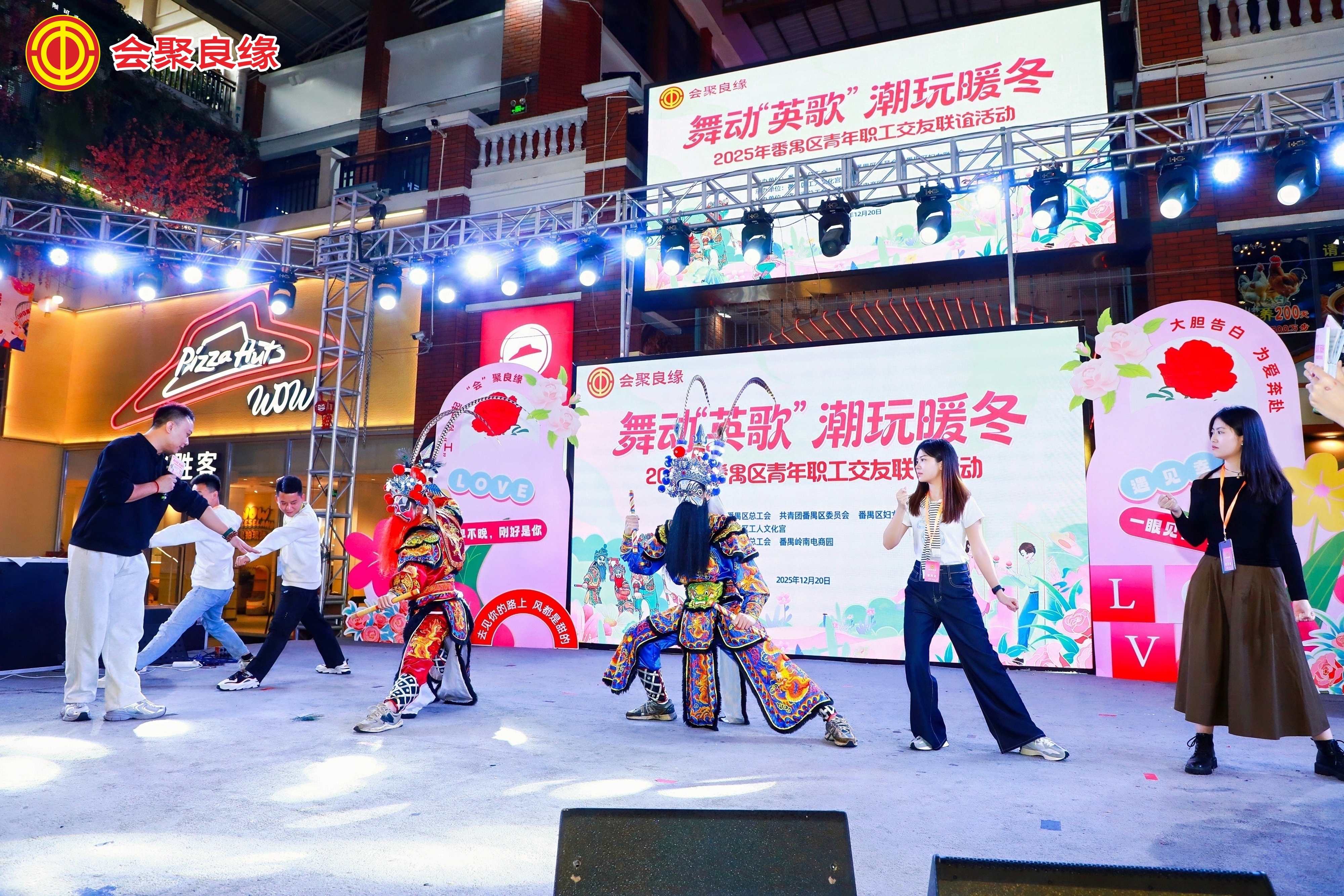 12月20日,由番禺区总工会、共青团番禺区委员会、番禺区妇女联合会主办,番禺区工人文化宫承办配资专业在线配资炒股,洛浦街总工会、番禺岭南电商园协办的“会聚良缘之舞动‘英歌’潮玩暖冬”2025年番禺区青年职工交友联谊活动在岭南电商园举行,来自各机关、企事业单位、社会组织的近200名单身青年职工在趣味互动中拉近距离,于潮玩体验中寻觅知己。