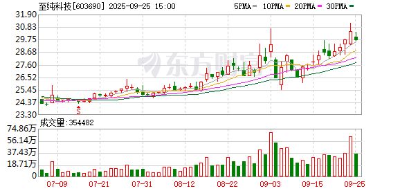 证券时报·数据宝统计显示,至纯科技今日收盘价为29.69元,下跌2.43%,日换手率为9.26%,成交额为10.59亿元,全天主力资金净流出9801.02万元,近5日该股累计上涨4.91%,近5日资金合计净流入70.15万元。